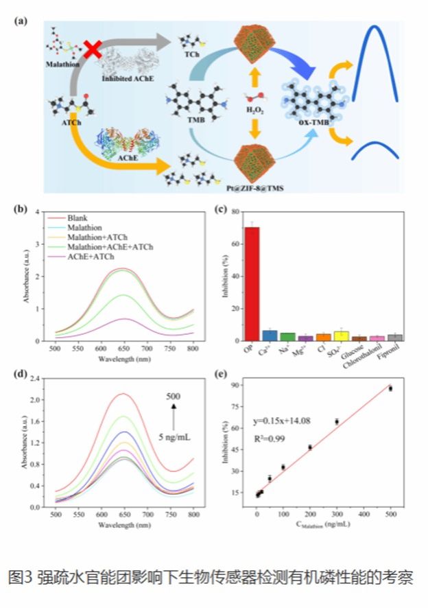 Rapid and sensitive detection of organophosphorus pesticides is crucial for protecting human health and environmental safety. Biosensors have attracted much attention in fields such as environmental detection and medical diagnosis due to their high sensitivity and fast response. The activity of nano enzymes, which are the core components, still needs to be improved. Therefore, developing new nano enzymes with high stability and activity is the key to improving pesticide detection efficiency. Research has found that strategies to enhance the catalytic performance of nanoenzymes include not only regulating the electronic structure of the active center, but also simulating the hydrophobic binding pockets of natural enzymes. However, the influence of water molecules in hydrophilic hydrophobic microenvironments on catalyst performance has not received sufficient attention. Therefore, a deeper understanding of how water molecules specifically affect nanoenzyme catalytic reactions is of great significance for designing efficient and economical nanoenzymes.