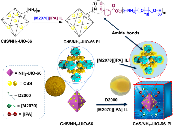 The development of high-performance alternative catalytic systems for CO2 photoreduction is considered a promising approach to address future energy demands and reduce CO2 emissions. The adsorption and activation of CO2 on the catalyst surface are key factors determining the conversion efficiency. At present, porous liquids are mainly used for gas capture, separation, and storage. NH2-UIO-66 has abundant and uniformly distributed metal centers as catalytic active sites, and amino groups can also enhance the adsorption capacity of CO2. So far, porous liquids have not been applied to carbon dioxide photoreduction. The use of solar energy to convert carbon dioxide into fuel is a global research effort that plays a crucial role in achieving carbon neutrality goals. CO2 photoreduction mainly relies on the participation of electrons, and how to maximize the directed enrichment of electrons around the catalytic active sites is a key factor. Meanwhile, developing porous liquids with high-performance CO2 photoreduction performance remains challenging, and precise design of porous substrates and steric hindrance solvents will open up new prospects for high-performance CO2 photoreduction.