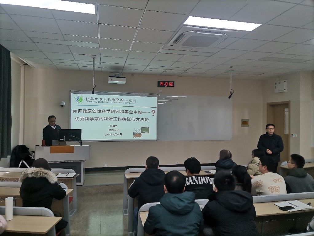 On the afternoon of January 23, 2024, the 6th Jinshan Environmental Innovation and Development Forum of our institute was held as scheduled in Room 207 of the Ke Research Institute. Professor Sun Jianzhong, Honorary Dean of Jiangsu University Material Energy Research Institute, was invited to give a report entitled "How to Conduct Original Scientific Research - Characteristics and Methodology of Excellent Scientists' Scientific Research Work, Analysis of Common Problems in Natural Science Foundation Project Application". Nearly 100 teachers and graduate students from the institute participated in the forum. The forum is hosted by Professor Xu Hui, Dean of the School of Environmental Safety.