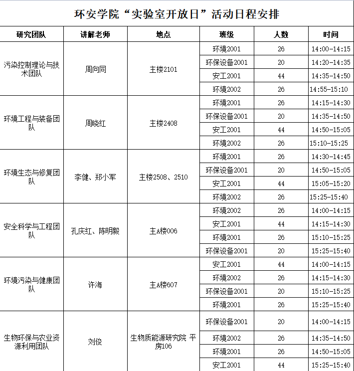 为了增强师生间的联系,提高学生对学院师资力量的认识,加强学生对所学专业的认知,环安学院将于2021年6月2日(周三)下午举办“实验室开放日”活动,学院六大研究团队将向同学们详细讲解团队及实验室相关情况。