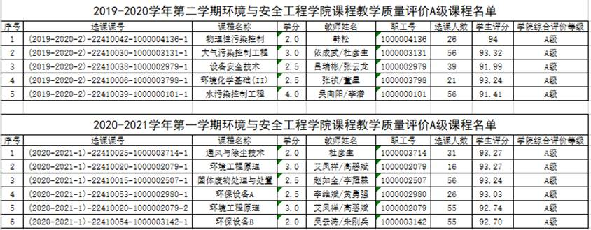 依据“关于印发《江苏大学本科课程教学质量评价及奖励办法(试行)》的通知”(江大校〔2013〕356号),以课程教学班为评价单元,在本年度前两学期所有课程学生评教平均分位列学院排名前50%的课程中,对本学期课程评教结果在学院排名前30%的课程,结合领导干部、同行听课情况和座谈会、信息员反馈等相关质量监控信息进行综合评价,A级教师课程班比例不超过本学期学院课程教学班总数的20%,经学院院务会研究决定以下课程作为A级教师课程班上报教务处(一课多教符合条件者入选,不符合条件者未入选)。