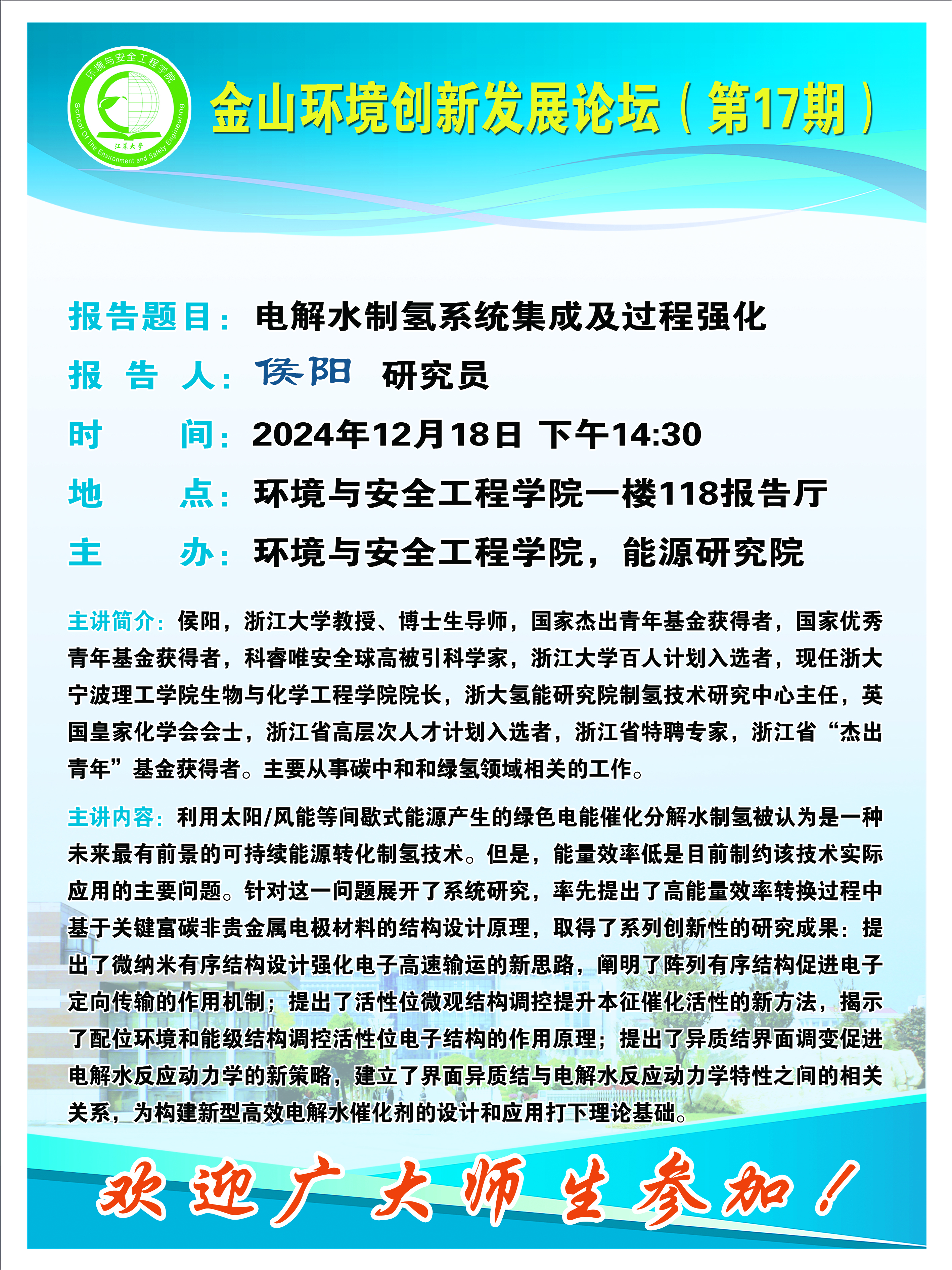 地址:江苏大学环安学院新大楼(基础实验楼)