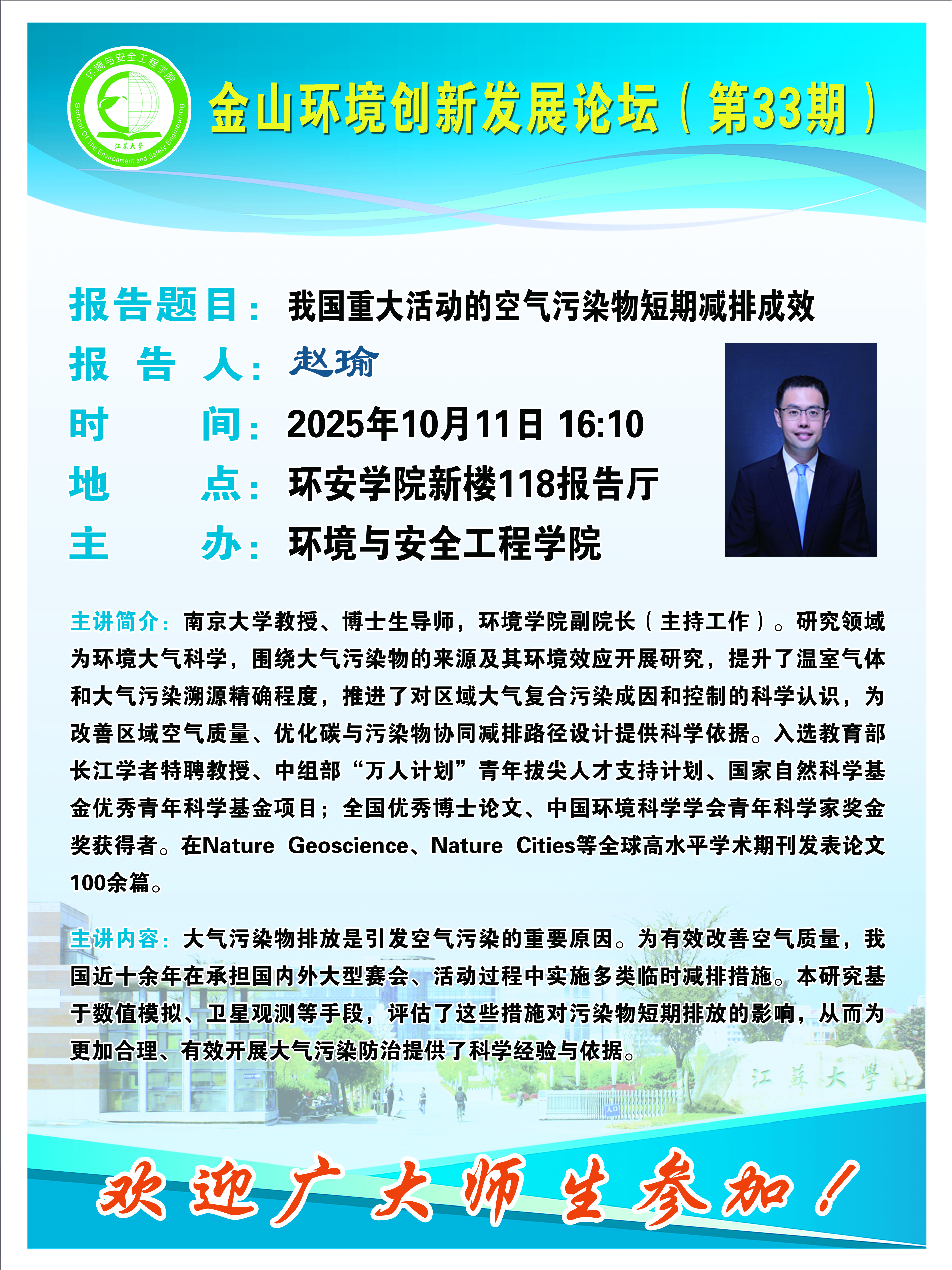 地址:江苏大学环安学院新大楼(基础实验楼)