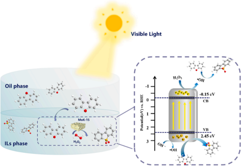 相关研究结果表明,Mo-KIT-6催化剂在可见光下对过氧化氢具有良好的活化能力,在短时间内(25分钟)可以实现对DBT的超深度脱除。同时催化剂对不同二苯并噻吩类含硫底物也展现出了良好的普适性,并具有较好的循环稳定性能。该研究为利用光催化氧化改善油品的清洁工艺提高了一种新的思路并有望实现工业化应用。