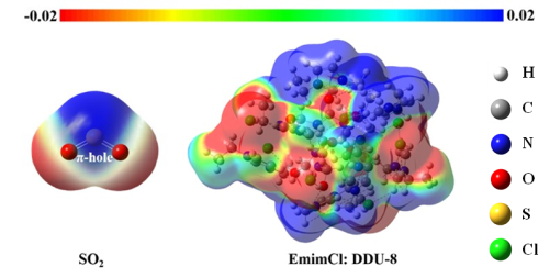 本研究聚焦于烟气中二氧化硫(SO2)的高效选择性脱除。SO2的深度脱除不仅有助于显著降低大气污染水平,更是实现烟气中二氧化碳(CO2)捕集前的关键步骤。然而,现有工业脱硫剂在效率与选择性方面仍存在明显不足。低共熔溶剂(DESs)作为新兴的绿色吸收剂,具备结构可调、易于合成、成本低等优点。研究团队通过在DESs结构中引入具有π-hole作用的高电负性官能团,显著增强了其对SO2的亲和力,实现了硫化物的有效吸收脱除。