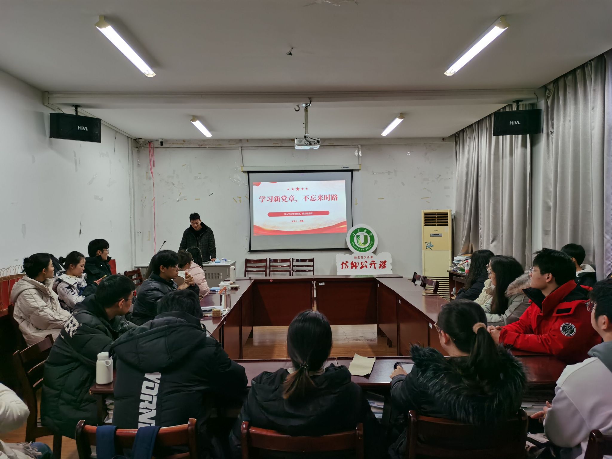 12月3日,环安学院两名21级研究生党员利用周末时间,在主楼2311报告厅给学院近30名本科生和研究生预备党员上党课。本科生支部书记、研究生辅导员李同庆老师主持。