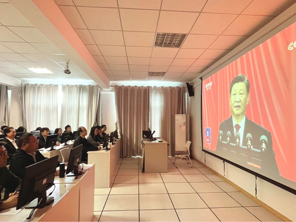 10月16日上午,党的二十大正式召开,环安学院党委组织党委中心组成员、学院办公室和实验室的全体人员以及研究生和本科生代表在主A楼501集中收看党的二十大开幕会,认真聆听习近平同志代表中国共产党第十九届中央委员会向大会所作的报告。学院其他师生在办公室、工作室或在家在宿舍自行收看开幕会盛况。开幕会结束后,各支部推荐上报了支部党员的简短收看感言,学院党委汇总后迅疾上报给校党委宣传部。