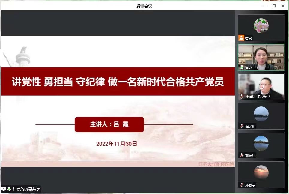 11月30日,环安学院党委邀请江苏大学纪委委员、附属医院党委副书记、纪委书记吕霞同志,给学院全体教职工和学生党员,线上作党风廉政教育专题讲座。本次讲座由学院党委副书记、院长杜道林主持。