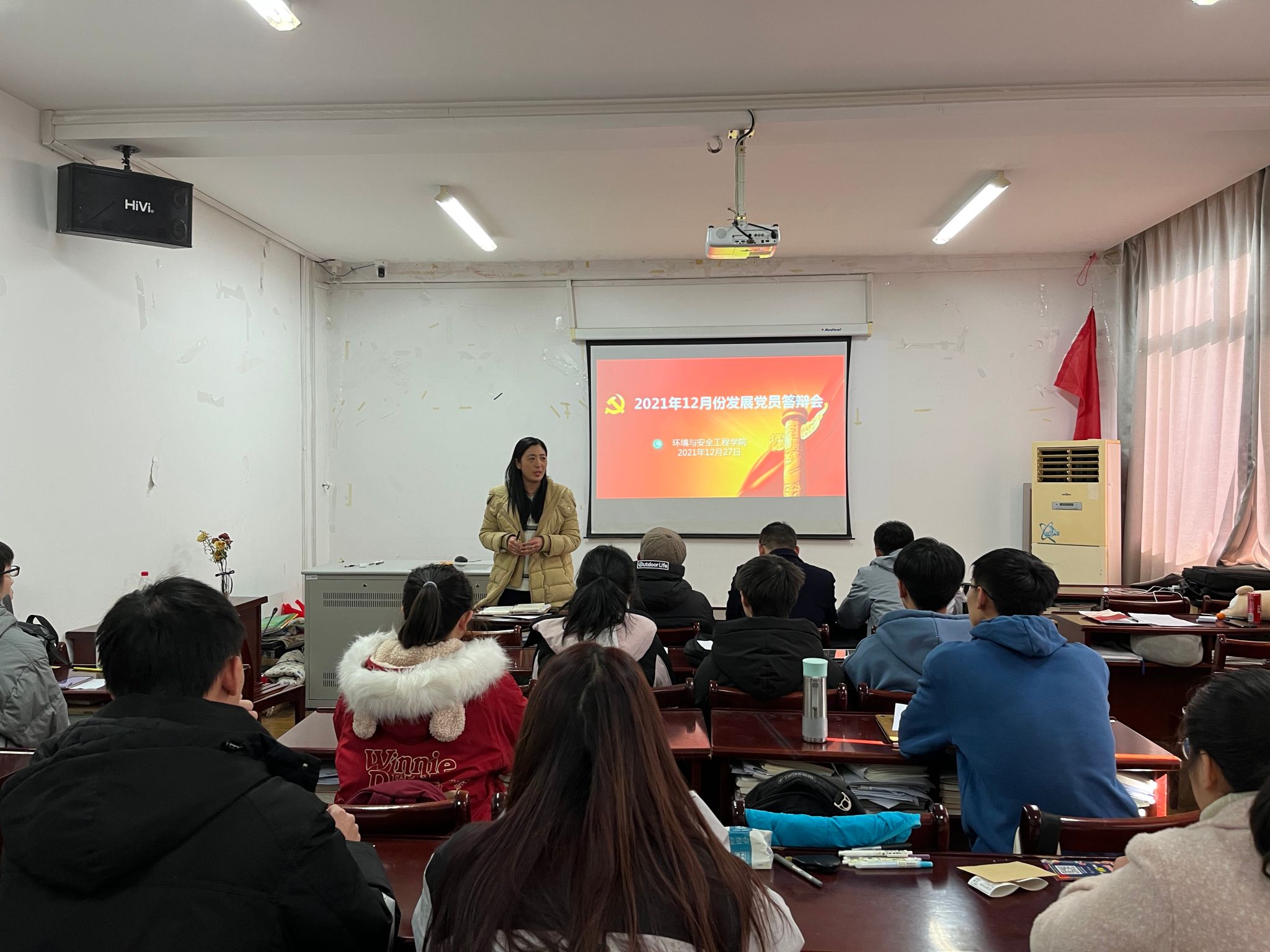 12月27日,环安学院党委在主楼2311举行2021年12月份发展党员答辩会,参加答辩的是我院18名本研学生拟发展对象。学院党委副书记、副院长杨博,关工委常务副主任缪应祺,党务办副主任曹霞,团委副书记张岳和研究生辅导员李同庆担任评委。答辩会由杨博主持。