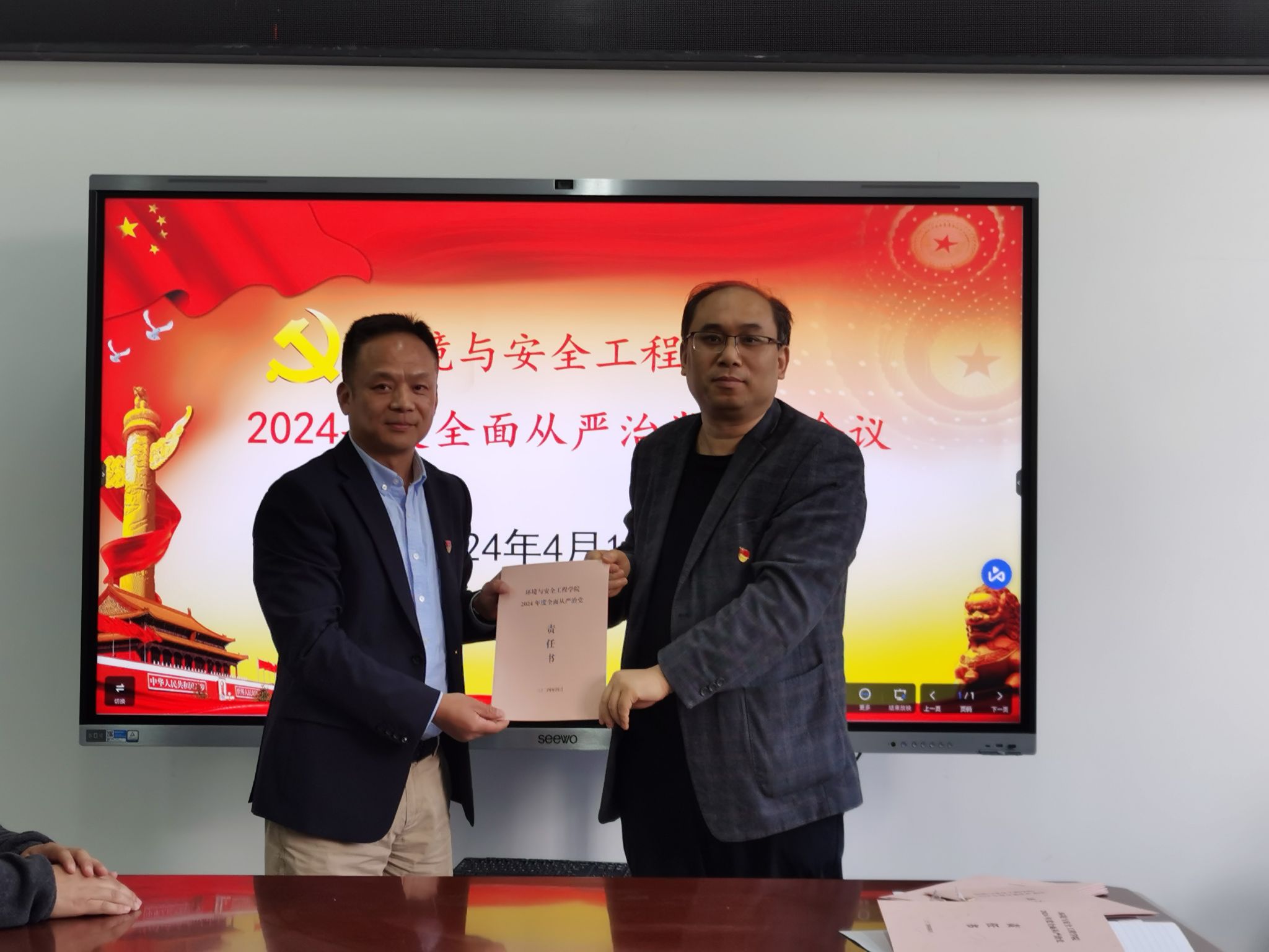 会上,夏建如解读了《环安学院2024年度落实全面从严治党党委主体责任清单》。领导班子代表、教职工党支部书记代表、学生党支部书记代表分别向院党委递交了2024年度全面从严治党主体责任书。学院党委副书记兼纪检委员赵兴联同志从六个方面总结了学院2023年度全面从严治党和党风廉政建设工作。